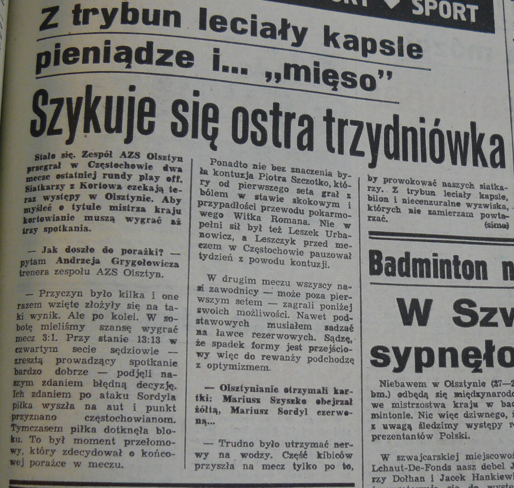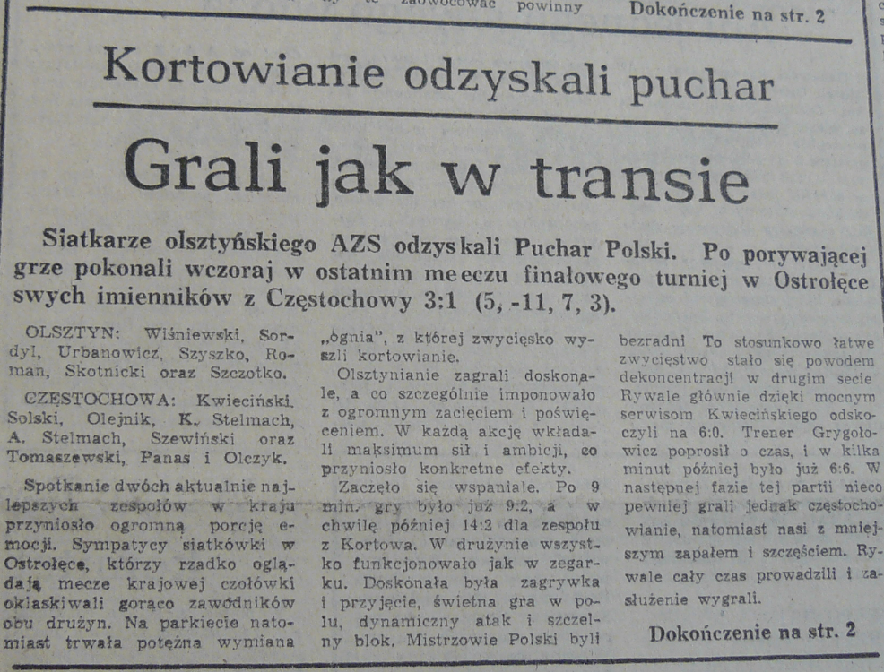Ten turniej z kolei był ciekawy o tyle, że nie było na nim Częstochowy, która odpadła z Bielskiem. To był chyba najłatwiejszy z tych pucharów, bo pamiętam, że przed ostatnim meczem z Nysą mieliśmy właściwie wszystko załatwione i potrzebowaliśmy chyba jednego seta - mówi Szyszko.