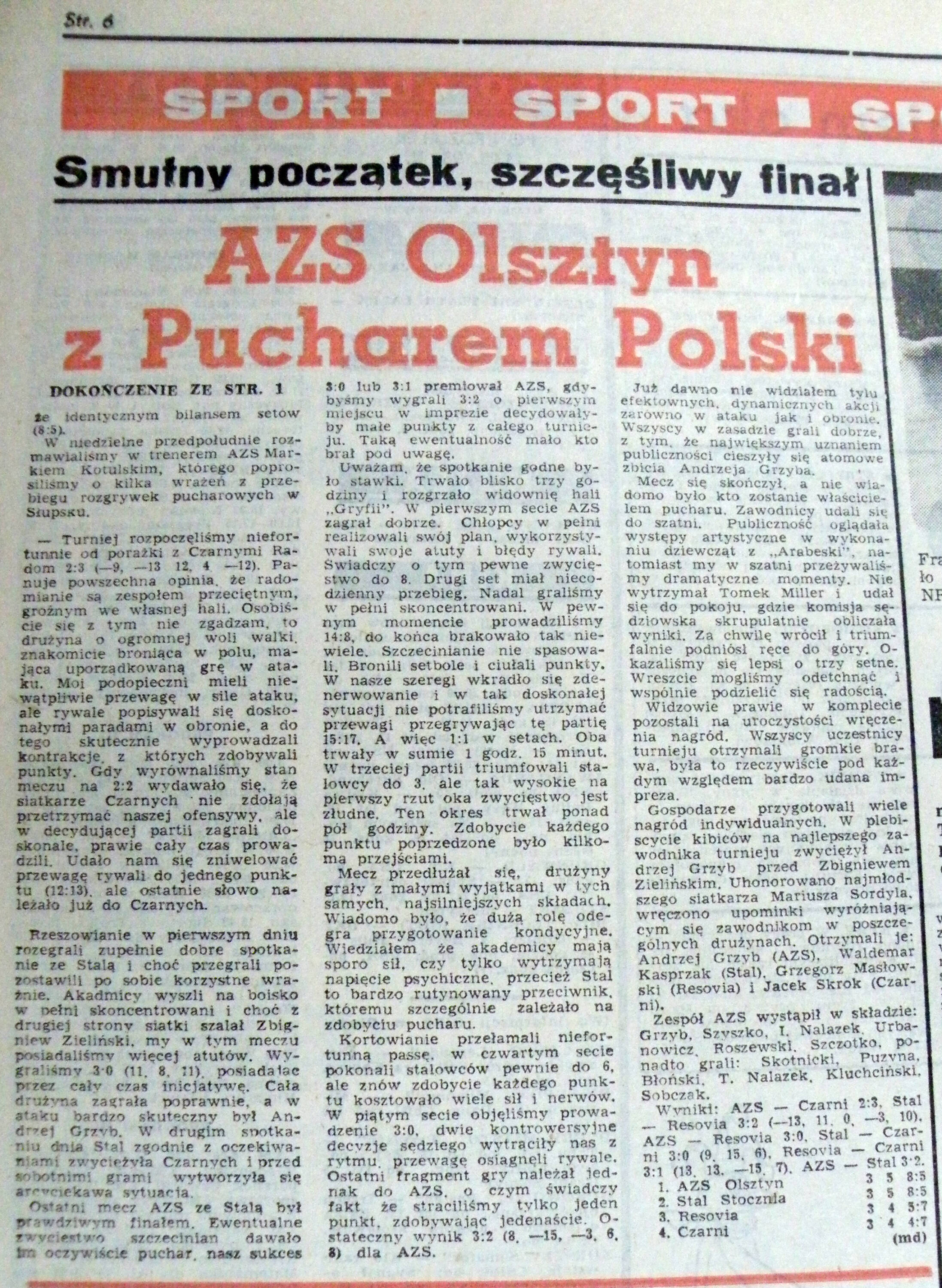 Bazuję na wspomnieniach, które są być może trochę podkoloryzowane, ale na miarę tamtych czasów to było wydarzenie. Hale podczas takich imprez były pełne - wspomina Szyszko, dziś rzecznik PZPS. - W Słupsku po przegranym meczu z Czarnymi Radom wygraliśmy dwa kolejne. Po zwycięstwie nad Stalą Stocznia Szczecin zeszliśmy do szatni i nie wiedzieliśmy, czy zdobyliśmy puchar. Dowiedzieliśmy się dopiero pod prysznicem. Wyprzedziliśmy ich chyba dwoma małymi punktami.