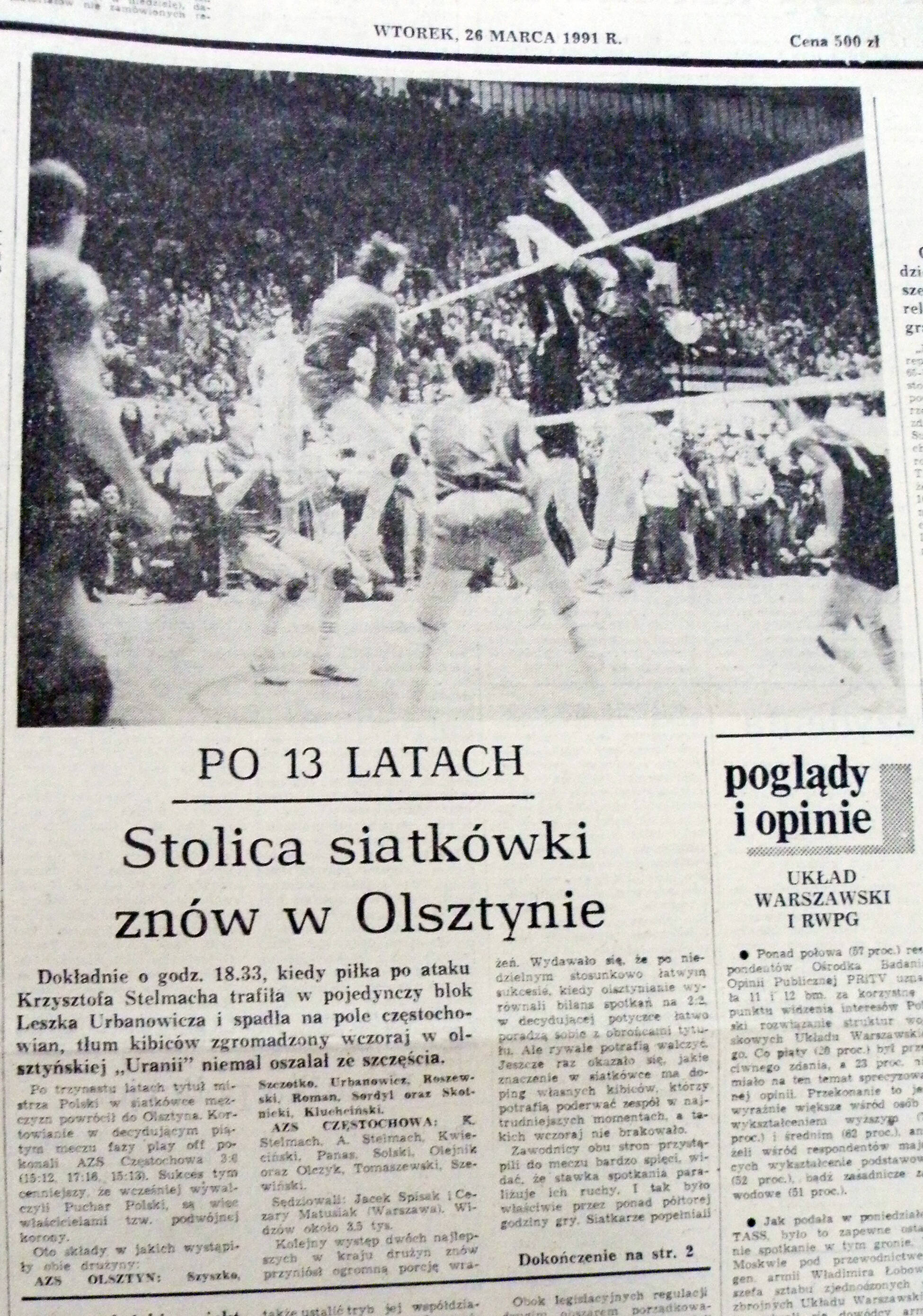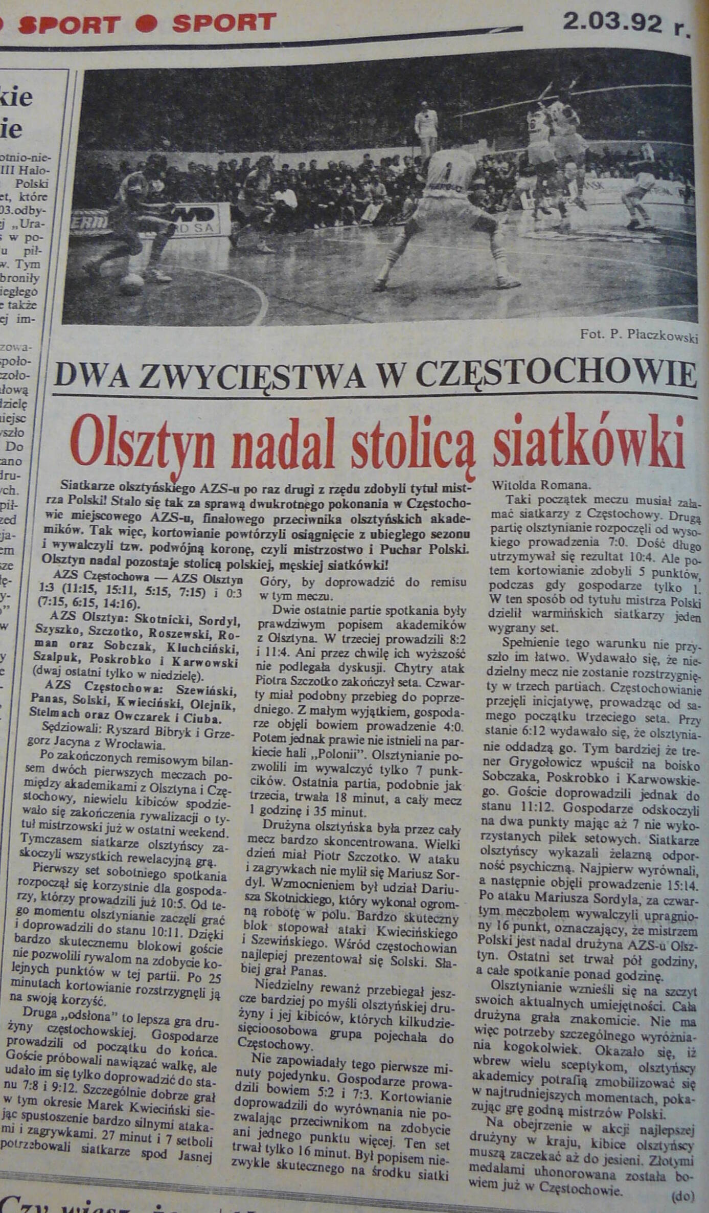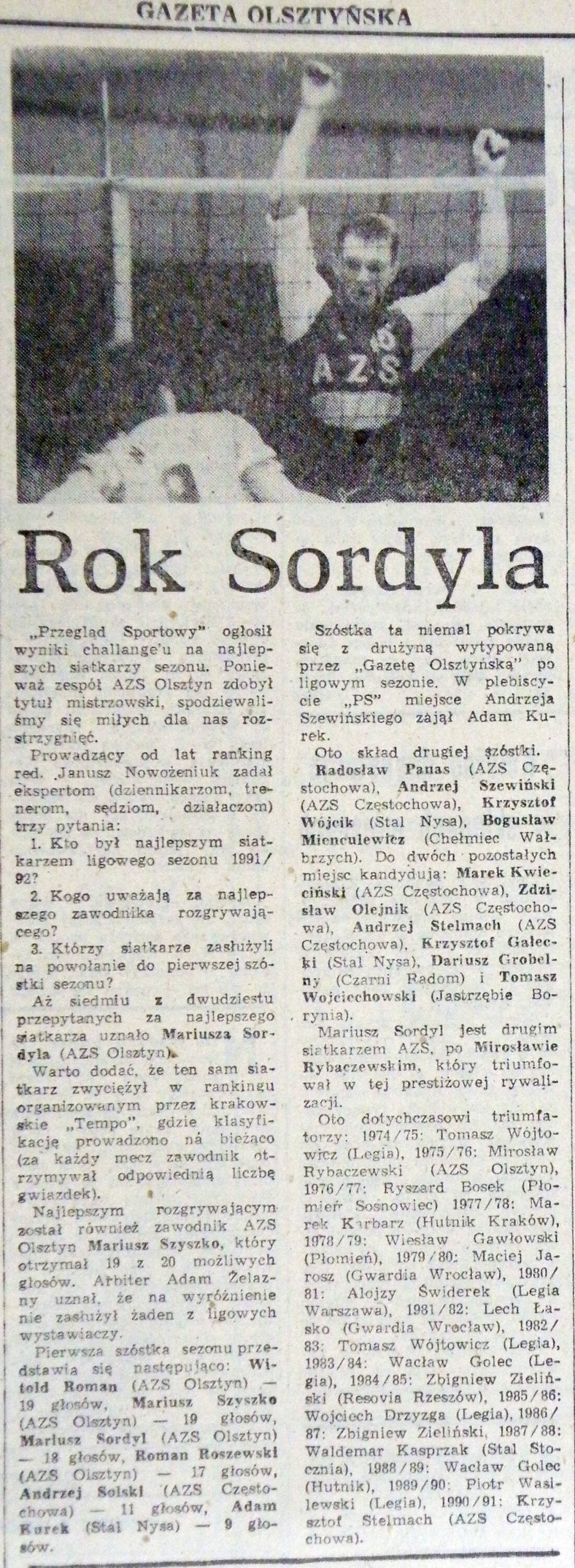 Rok później w pucharze zajęli drugie miejsce za Hutnikiem Kraków, a w lidze trzecie - zarówno ich, jak i krakowian pogodził AZS Częstochowa. Aż przyszły lata 1991-1992, do dziś wspominane na Warmii przez starszych kibiców z łezką w oku. Klub wzmocnił Mariusz Sordyl, który z miejsca stał się ofensywnym liderem. Olsztynianie dwa razy z rzędu zdobyli podwójną koronę.
