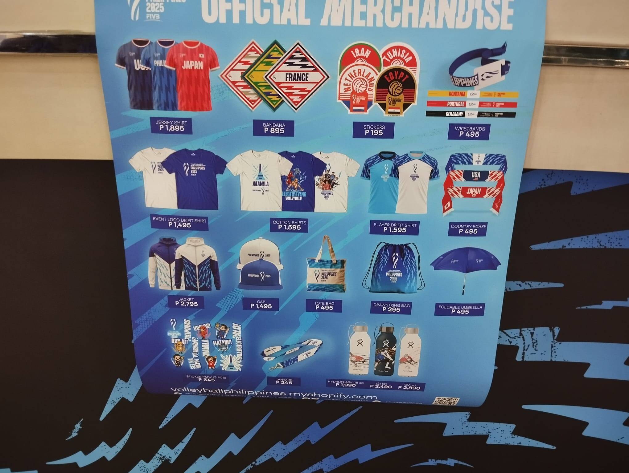 Mimo, jak na razie nikłej frekwencji na mistrzostwach świata siatkarzy, choć ceny biletów nie są wysokie (najtańszy 30 zł obejmuje dwa mecze), pamiątki z mundialu na Filipinach sprzedają się bardzo dobrze. Kilka rodzajów koszulek zostało już wyprzedanych pierwszego dnia. Mistrzostwa świata rozgrywane są w dwóch halach Smart Araneta Coliseum i Sm Mall of Asia Arena. Przed oboma obiektami jak i wewnątrz są sklepiki z souvenirami siatkarskiego mundialu. W ofercie m.in. jest, a właściwie już było, kilka rodzajów koszulek, czapeczki, szaliki, kurtki czy maskotka mistrzostw. Mimo, że ceny produktów nie należą do najtańszych to już trzy rodzaje koszulek zostały wyprzedane i jak twierdzą organizatorzy nie ma szans na ich „doprodukowanie”, natomiast mają się pojawić w sprzedaży worki z logo mistrzostw, których też już zabrakło. Cena bawełnianej koszulki z logiem mistrzostw czy też czapki to wydatek 1595 peso filipińskich około 98 zł), natomiast koszulka reprezentacji danego kraju - 1895 (120 zł). Kurtka ortalionowa to wydatek w przeliczeniu na złotówki około 180 zł, a pluszowa maskotka 50 zł.